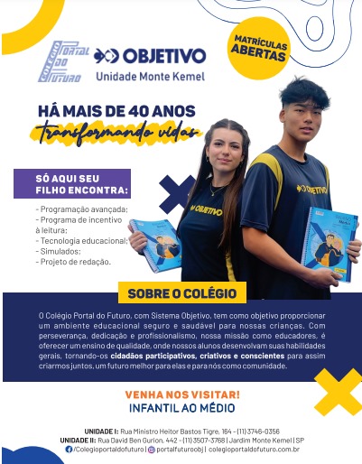 O Ensino Médio do Colégio Portal do Futuro com sistema Objetivo tem como...